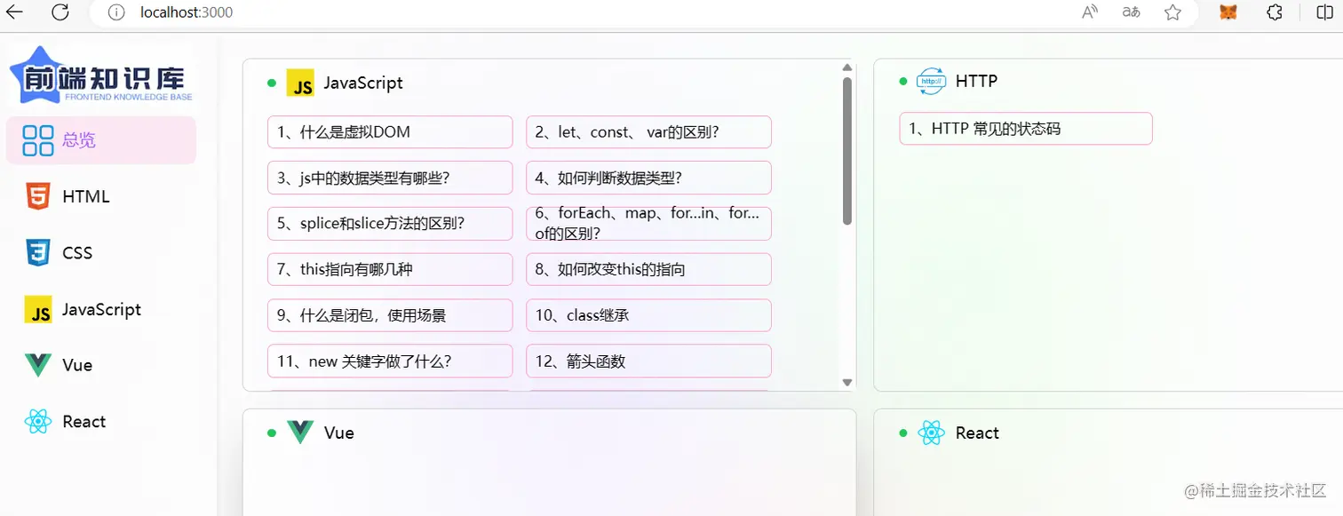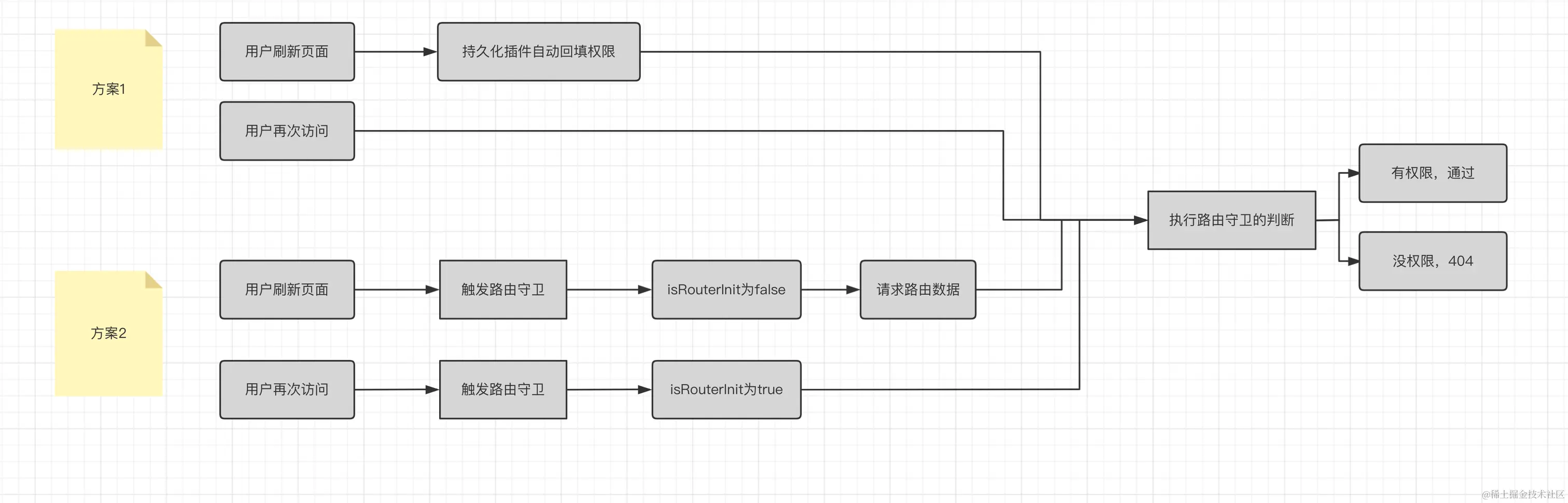 我司现在就是前端来控制页面级的权限,不同权限的用户显示不同的侧边栏和限制其所能进入的页面(也 做了少许按钮级别的权限控制),后端则会验证每一个涉及请求的操作,验证其是否有该操作的权限,每 一个后台的请求不管是 get 还是 post 都会让前端在请求 header 里面携带用户的 token,后端会根据 该 token 来验证用户是否有权限执行该操作。若没有权限则抛出一个对应的状态码,前端检测到该状 态码,做出相对应的操作。 使用 vuex 管理路由表,根据 vuex 中可访问的路由渲染侧边栏组件。
