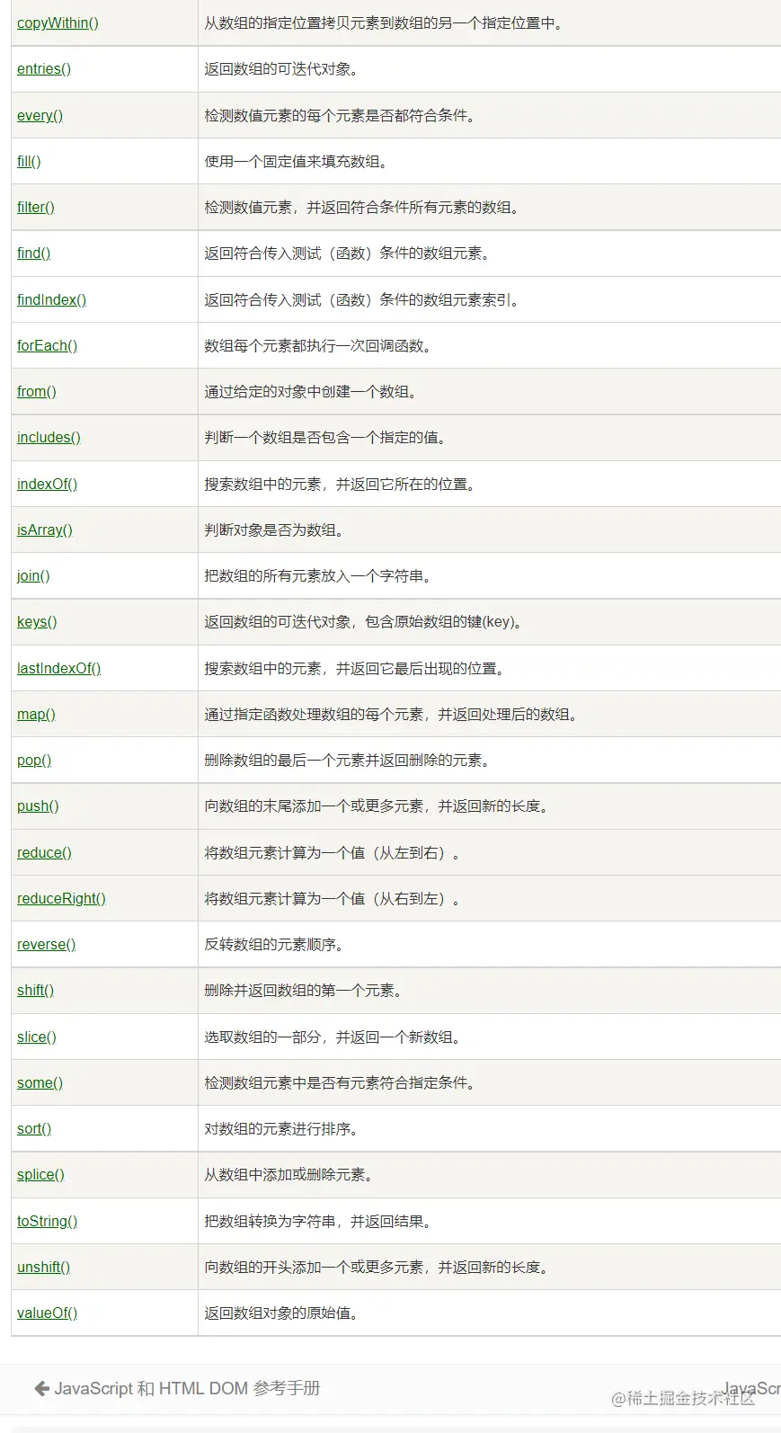 pop() 方法从数组中删除最后一个元素,并返回该元素的值。此方法更改数组的长度。