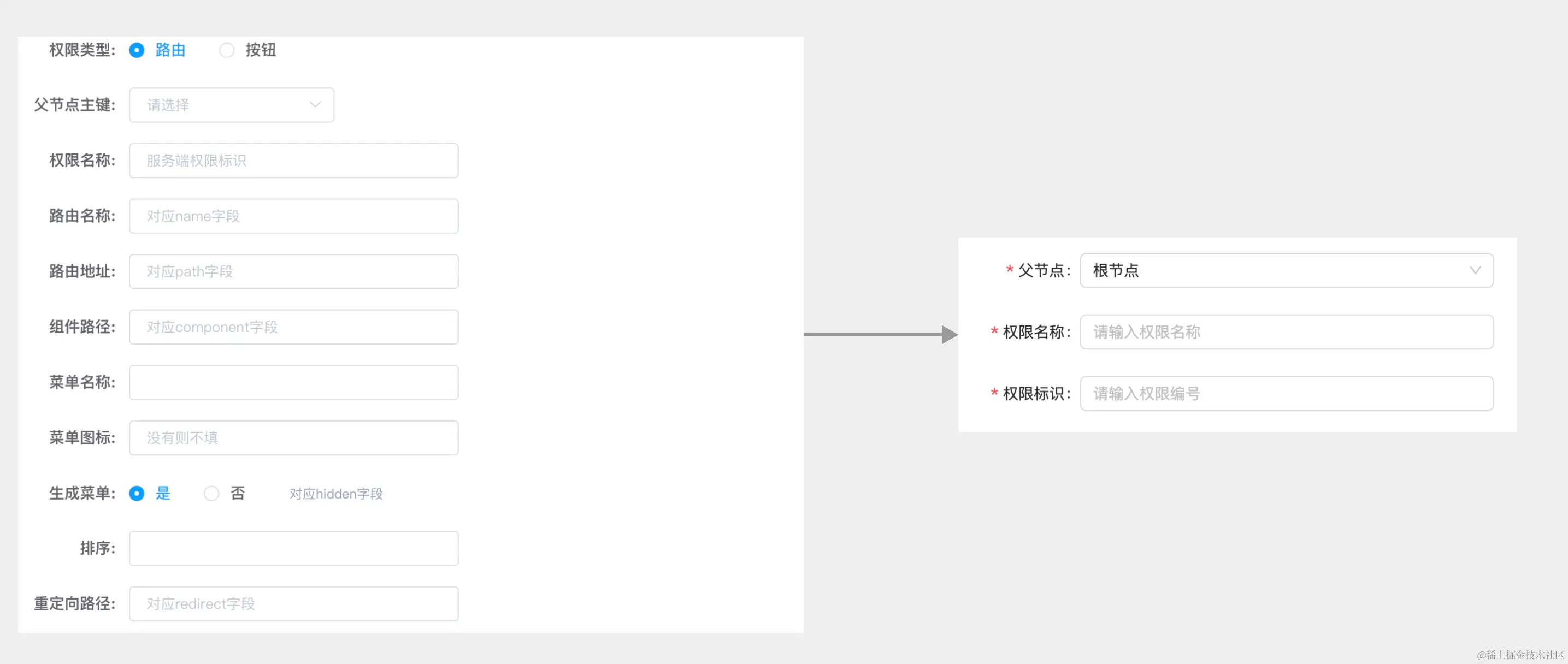 当用户登录后,获取用role,将 role 和路由表每个页面的需要的权限作比较,生成最终用户可访问的路由表。