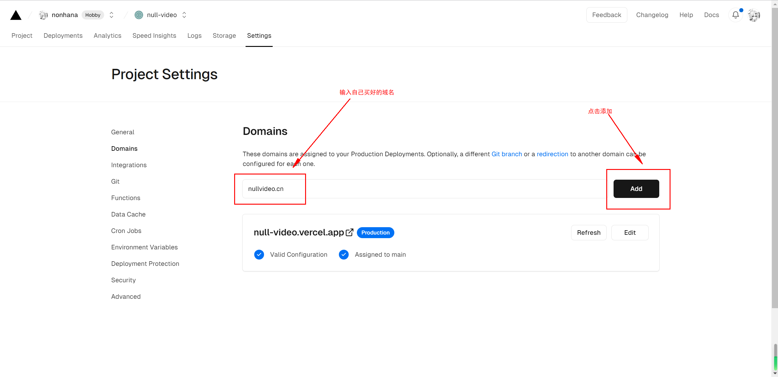 2. 在Vercel上为自己部署好的前端应用添加新的域名解析